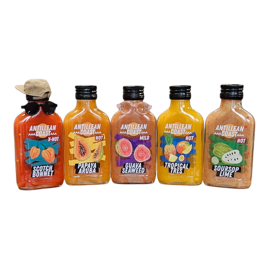 PAPAYA ARUBA, GUAVA SEAWEED, SOURSOP LIME, TROPICAL TRES OR SCOTCH BONNET.